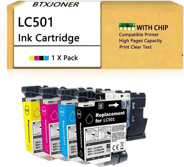 High Page Yield: Up to 250 per LC501 Black Ink cartridge, 200 per LC501 Cyan Magenta Yellow, at 5%Coverage of A4 letter