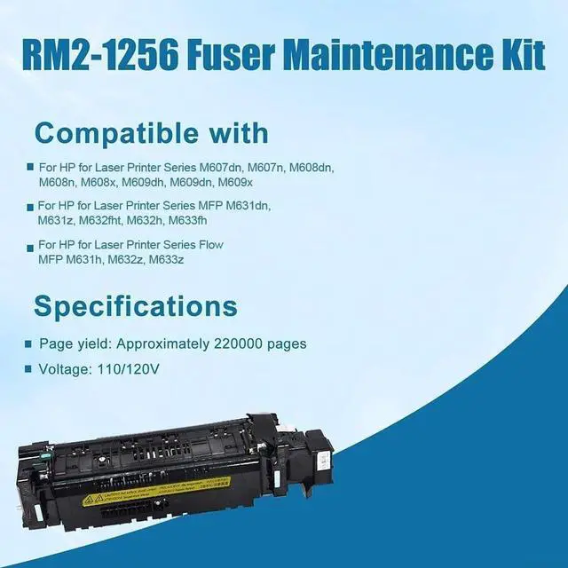 Professional Fixing Capability: RM2-1256 Fuser for HP M607 M608 M609 M631 M632 M633 L0H24A keeps toner firmly bonded to paper, delivering cri-sp and clear results.