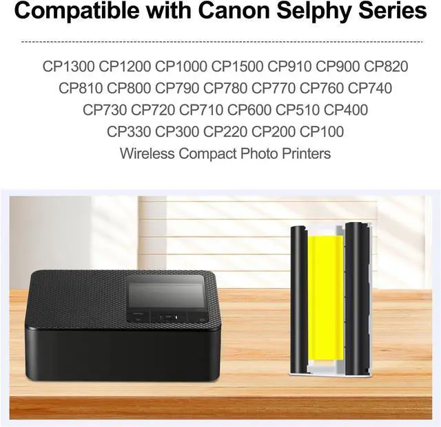 Compatible with Canon Selphy Paper CP series: CP100 / CP200 / CP300 / CP400 / CP500 / CP600 / CP700 / CP720 / CP730 / CP740 / CP760 / CP770 / CP780 / CP790 / CP800 / CP810 / CP820 / CP900 / CP910 / CP1000 / CP1200 / CP1300 / CP1500 Photo Printers.