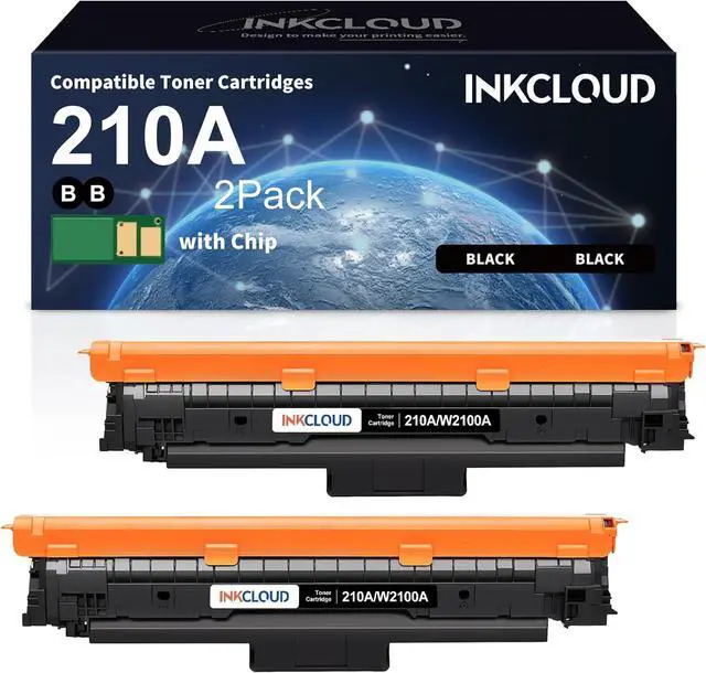Package Contents: 2 x 210A Black Toner Cartridges with CHIP high yield replacement for HP 210A 210X W2100A W2100X (with CHIP)