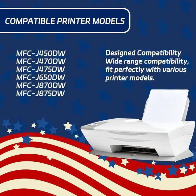 Compatible Printer Models: Compatible with Brother MFC-J450DW MFC-J470DW MFC-J475DW MFC-J650DW MFC-J870DW MFC-J875DW printers. Please check your printer model carefully before purchasing! If you are unsure about your printer model or code, please contact us, and we will help you find the products suitable for your printer