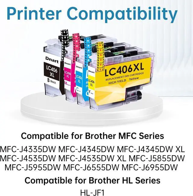 Easy to Install and Use: DNART LC-406 Ink cartridge compatible for Brother printer can be recognized by compatible printer instantly and work flawlessly