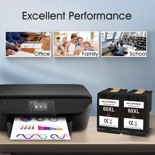 BOX INCLUDES: 2 Pack for HP 60XL Ink Cartridges (2 Black).