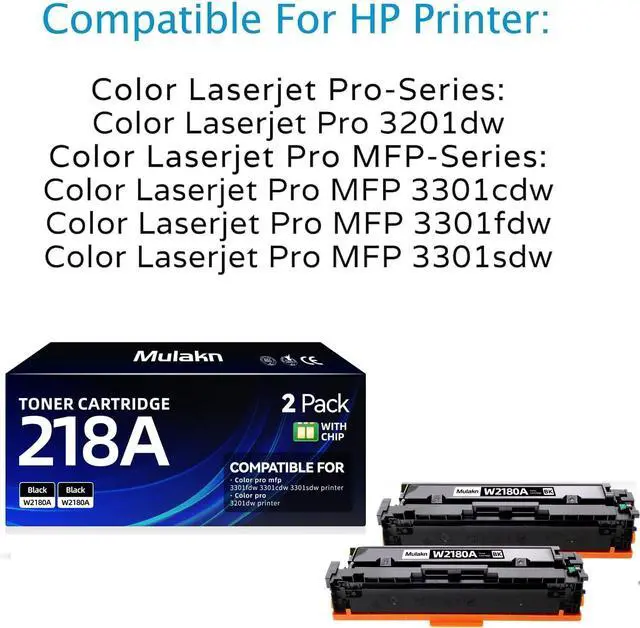 Package Contents: 1PK Black 218A Toner Cartridge for HP 218A 218X Black Toner Cartridge With Chip Work for HP Color Laserjet Pro MFP 3301FDW 3201DW 3301SDW 3301CDW Printer