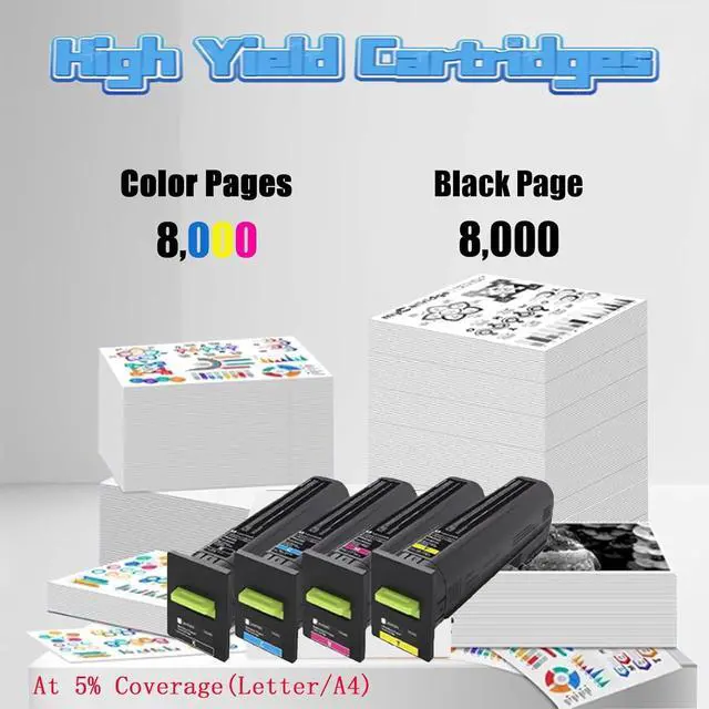 High Capacity Performance:Enjoy high-yield capabilities with our black toner cartridge providing up to 8,000 pages, while each color cartridge (Cyan, Magenta, Yellow) supports up to 8,000 pages, making it ideal for high-volume printing tasks (based on 5% coverage test on A4 paper)