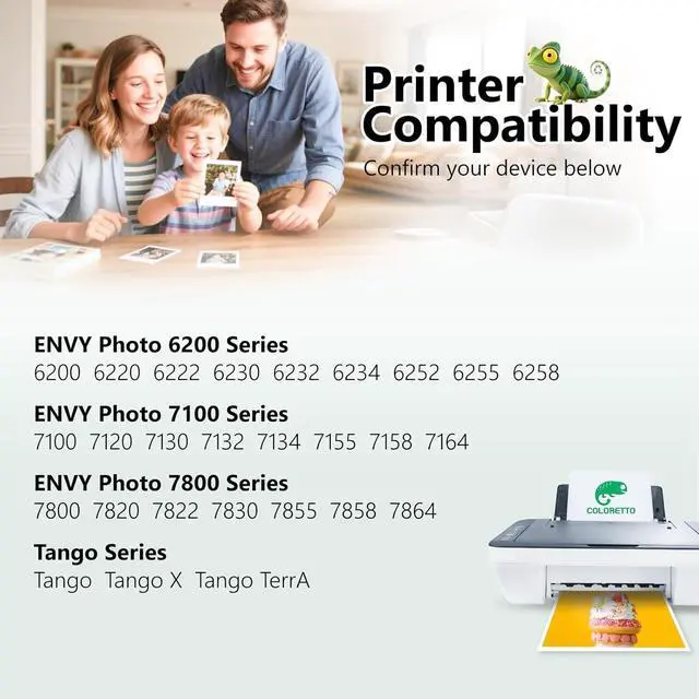 High Compatibility: suitable for printers such as: ENVY Series6222 7132 ENVY Photo Series6200 6220 6230 6232 6234 6252 6255 6258 7100 7120 7130 7134 7155 7158 7164 7800 7820 7822 7830 7855 7858 7864 ; Tango,Tango X, Tango Terra