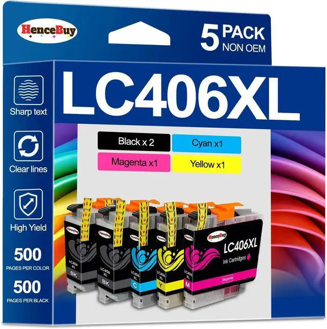 Product Model: LC406XL LC406 Ink Cartridges for Brother Printer 5 Pack Black Cyan Magenta Yellow