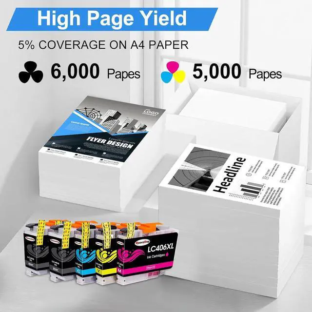 High Page Yield: Up to 6000 pages per LC406 XL Black Ink Cartridge, up to 5000 pages per LC406 XL Color Ink Cartridges (5% coverage at A4 paper