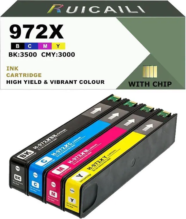 Package Contents:total 4 pack 972A ink cartridges.( Black / Cyan / Magenta / Yellow )