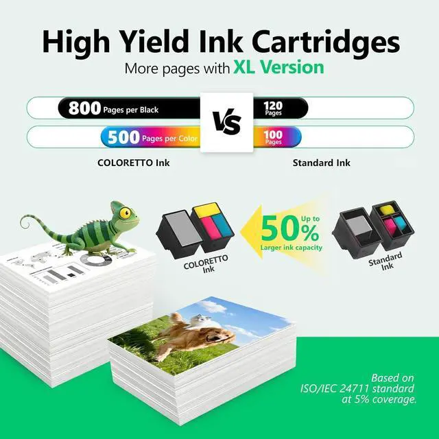 High Yield & Cost Savings: Prints up to 800 pages (Black) and 500 pages (Tri-Colour) at 5% coverage. Upgraded chip tracks ink levels in real-time. Large Capacity prints more pages than standard version, offering better value and savings for frequent users