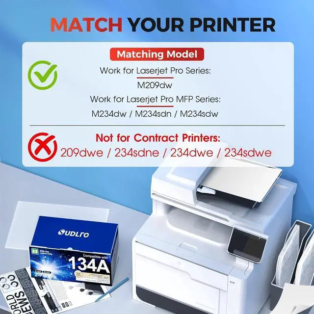 Warm Tips: Not compatible for printers suffixed with the letter e, such as HP Laser jet Pro M209dwe, M234dwe, M234sdwe, M234sdne (Please confirm your printer model before purchase)