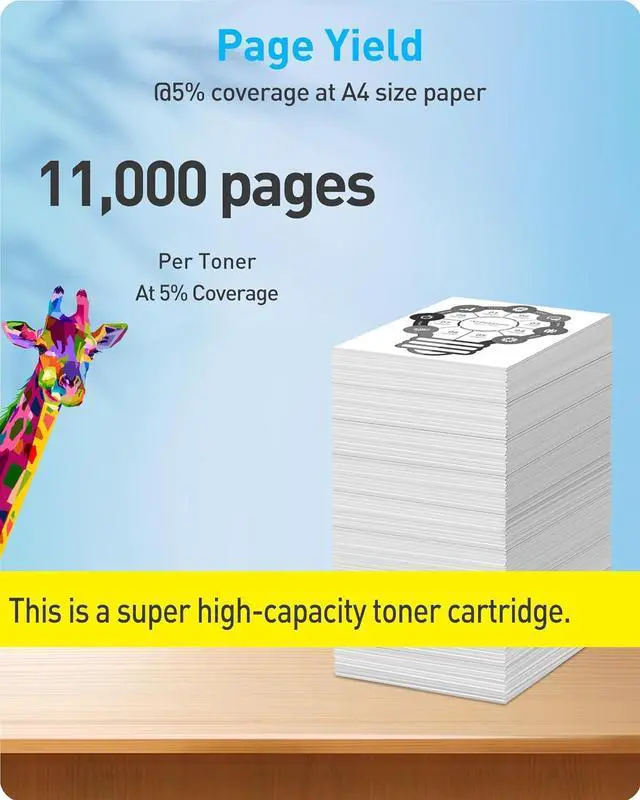 Page Yield: up to 11,000 pages per black toner @5% coverage at A4 size paper