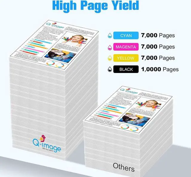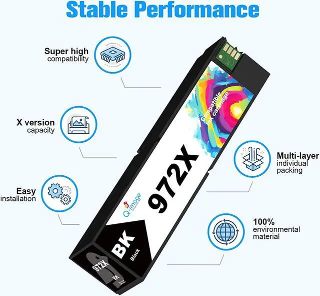 High Page Yield:10,000 pages per 972X black ink cartridge,7,000 pages per 972X color ink cartridge(Cyan Magenta Yellow),2X more pages than standard compatible hp 972X ink cartridges