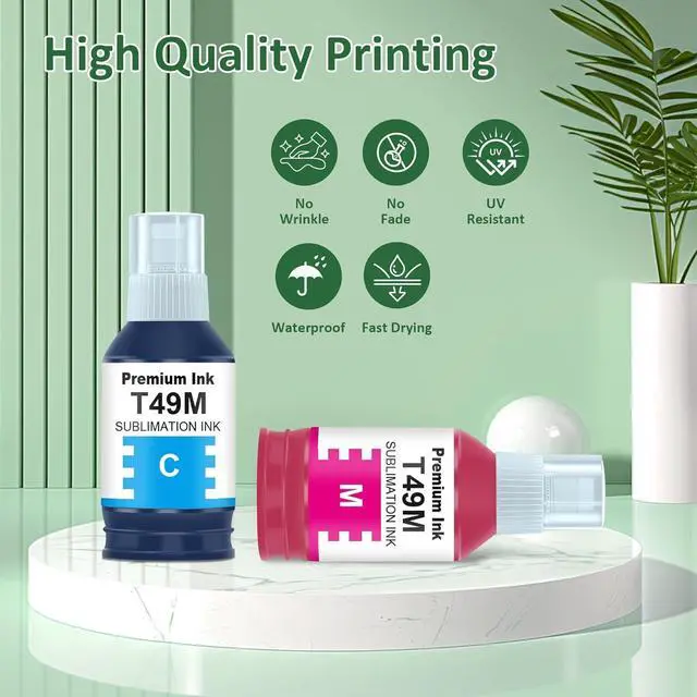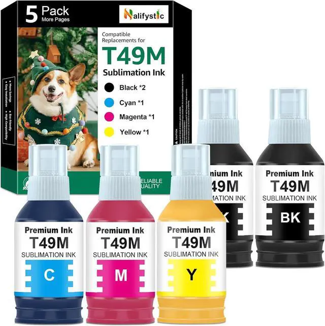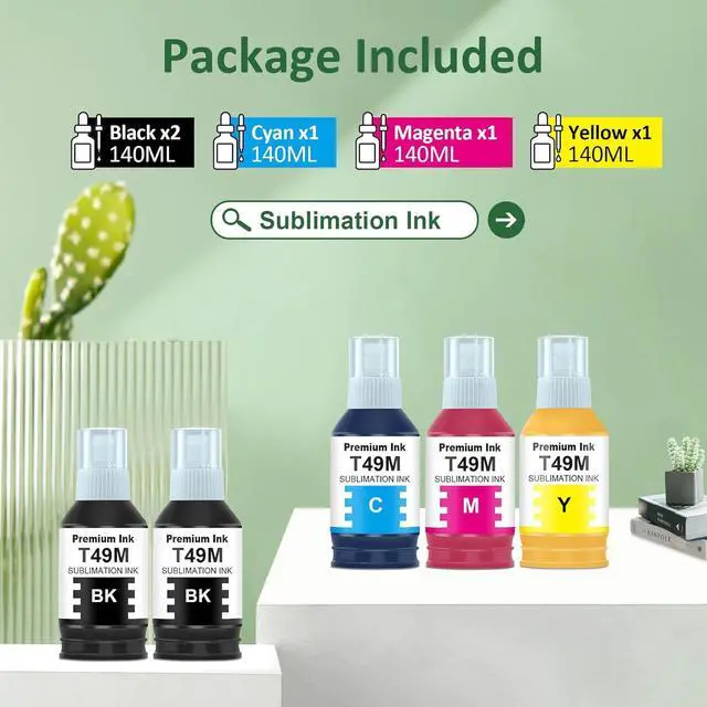 Package Contents: 5Pack compatible Sublimation Ink Bottle (2Black 1Cyan 1Magenta 1Yellow, 5-Pack).