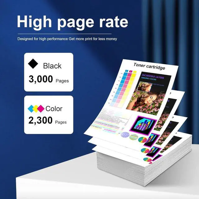 High Page Yield: 3,000 pages for black toner, 2,300 pages for each color toner (5 percentage coverage on A4 paper)
