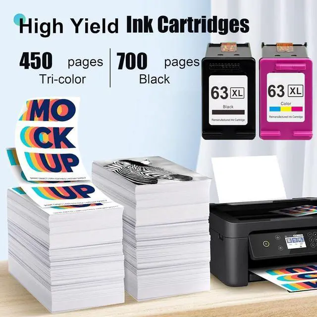 High Page Yield: Up to 700 pages for HP ink 63 XL black , Up to 450 pages for HP ink 63 XL color (at 5% coverage of A4 paper)