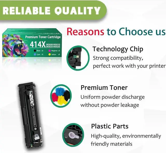 Our Advantages: 414X toner cartridge uses premium toner, with fine particles, low scrap rate, and no ink leakage, ensuring sufficient number of printed pages, high color saturation, and clearer color printing, creating a more realistic creation for you and your eyes visual effects.