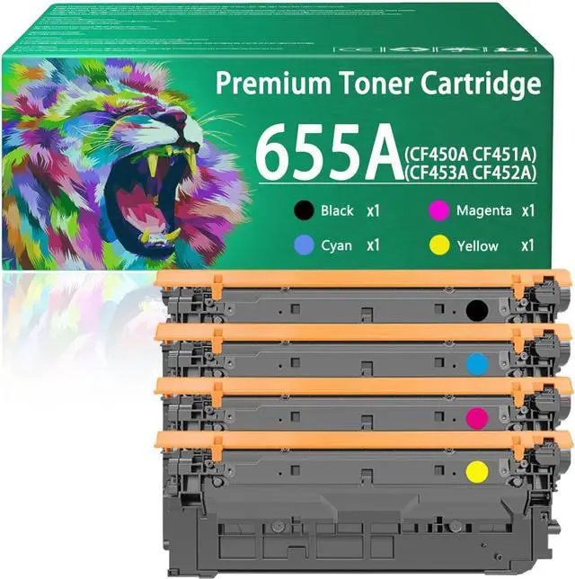 Package Contents: 1 Black CF450A toner cartridge, 1 cyan CF451A toner cartridge, 1 CF452A Magenta toner cartridge, 1 CF453A Yellow toner cartridge