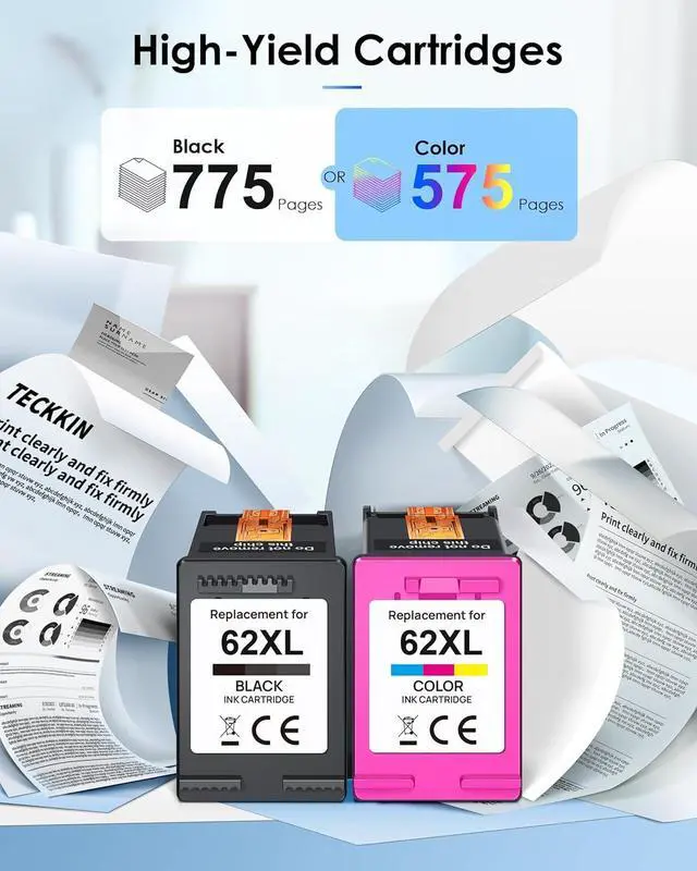 All TECKKIN 62XL for hp 62xl ink cartridges combo pack are filled with premium ink and equipped with the latest upgrade intelligent chips, which is matched with advanced production technology and strict quality inspection process to ensure the high printing quality of each 62XL ink cartridge. Bring you clear print text and bright vibrant images