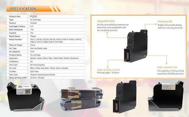 [Quick-Drying Ink Cartridge]: Phezer uses imported industrial-level of quality ink cartridges, achieving real quick drying on all printing surface. With the high quality nozzle, the printing is Smooth, Brightly and stable.