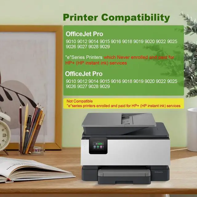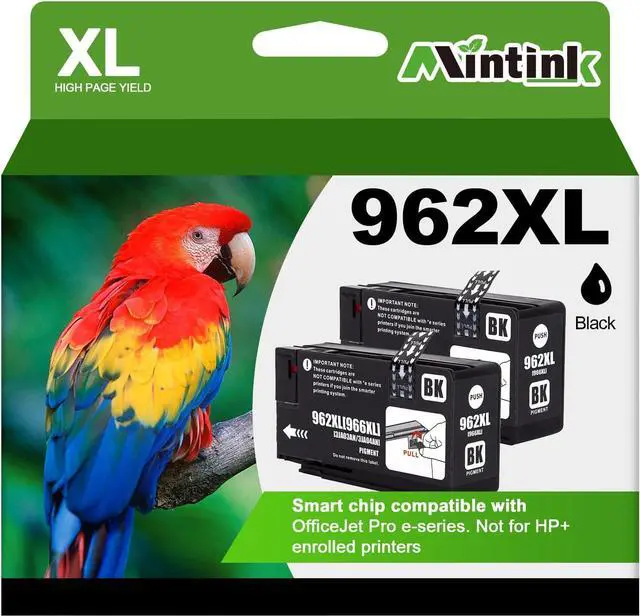 Notice: 962 black ink cartridges with smart chip technology are compatible with OfficeJet Pro e-series printers (9010e, 9012e, 9015e, 9018e, 9019e, 9020e, 9025e, etc.) but cannot be used with HP+ enrolled printers.