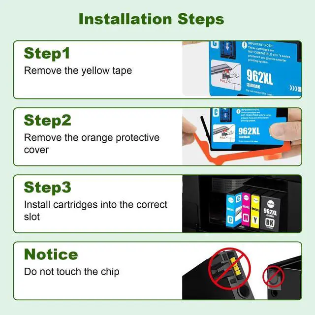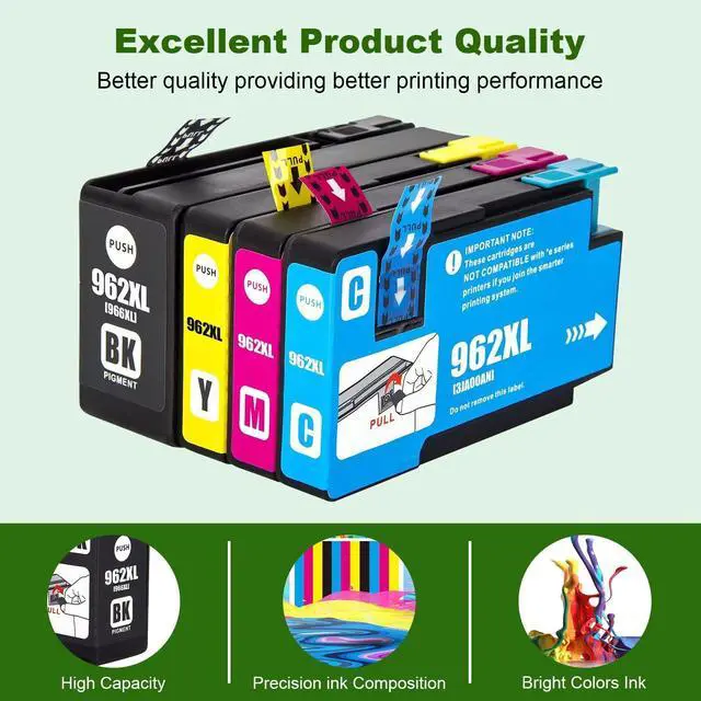 Key Benefits: The Mintink 962 ink cartridges combo pack replacement for hp 962XL black ink cartridges 24-month defect-free support any issues, we replace! Plus, enjoy lifetime technical support for hassle-free printing. Reliable, affordable, and backed by lasting service!