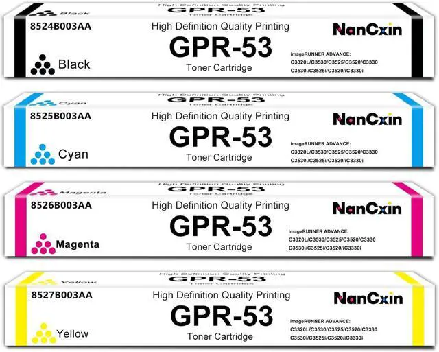 Model Name: GPR-53 GPR 53 Toner Cartridge; 4 Packs (8524B003AA Black, 8525B003AA Cyan, 8526B003AA Magenta, 8527B003AA Yellow); Replacement for Canon GPR-53 C-EXV49 Toner