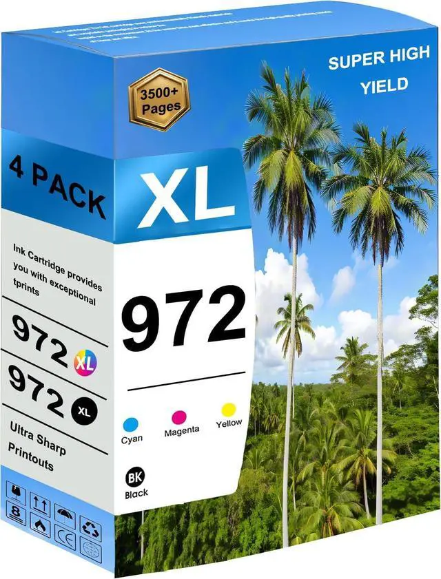 COLOR CONTAINS:4 pack high yield 972XL 972 for HP ink cartridges black and color Achieve higher page yield with 972XL 972 for HP ink cartridges to meet your printing needs.