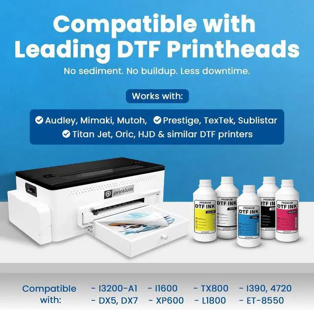 WATER-BASED, NON-TOXIC WHITE DTF INK : Printium white DTF ink is water-based, low-odor, and safe for direct-to-film heat transfer printing on garments. Ideal for small businesses, commercial users, and t-shirt brands. Shake well before each use to ensure consistent pigment distribution. Designed for use with all types of PET film and compatible with hot or cold peel methods.