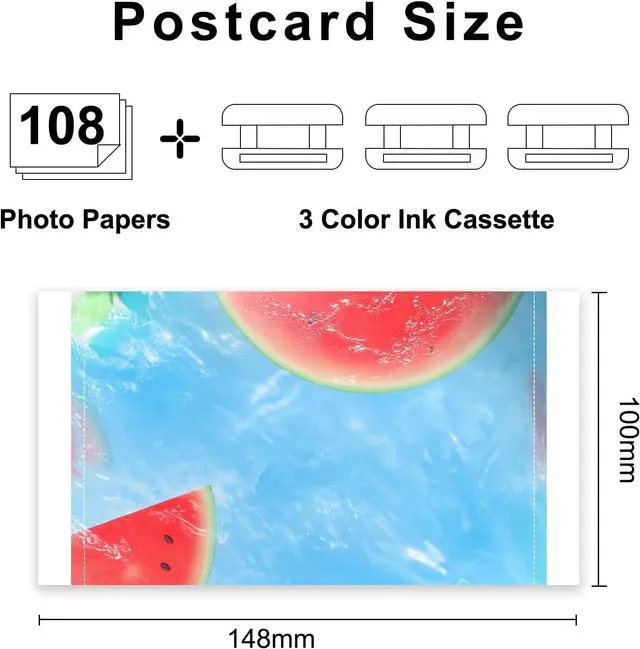 108 SHEETS OF PHOTO PAPER PRINTING: The photo paper is waterproof, oxidation-proof and UV-resistant, the blank area set on both sides can effectively prevent fingerprints from being printed on the photos, the dye sublimation technology is used, the printed photos are waterproof, fingerprint-resistant, anti-fading, tear-resistant, and can be stored for a long period of time. Our refills include a total of 108 sheets of photo paper and 3 ink cartridge refills.