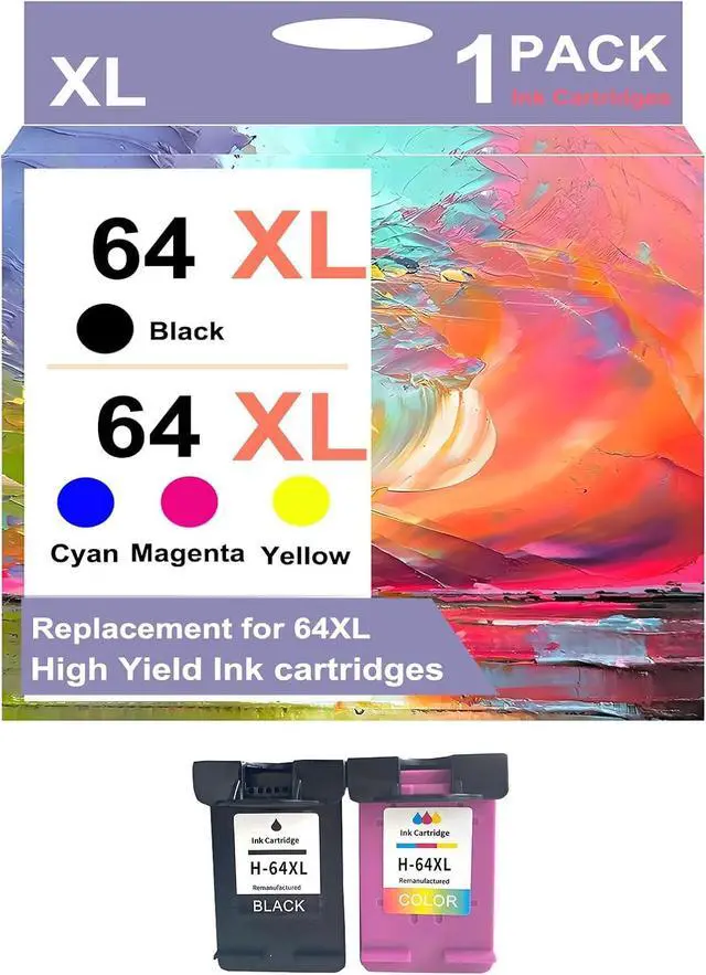 COLOR CONTAINS:2 pack high yield 64XL 64 for HP ink cartridges black and color Achieve higher page yield with 64XL 64 for HP ink cartridges to meet your printing needs.