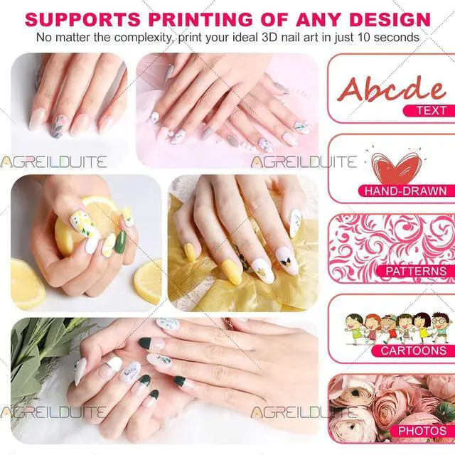 10-Second 3D Professional Designs- Our automatic nail art printer achieves intricate patterns impossible by hand. Photos, cartoons, text no matter the complexity print flawless 3D nail art in just 10 seconds. Salon-quality results at home, instantly.