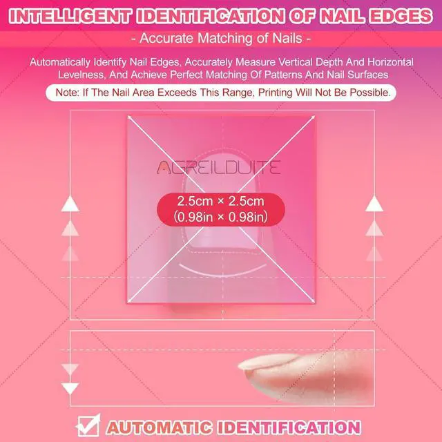 Smart Auto-Sizing & Precision Control- The nail printer machine intelligently scans nail shape/size and auto-fits designs. Fine-tune patterns manually via the responsive touchscreen for pixel-perfect placement. No measuring, no errors.