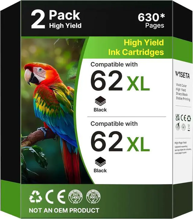 Package contents: 2 x 62xl ink cartridges black (Total 2 Pack).
