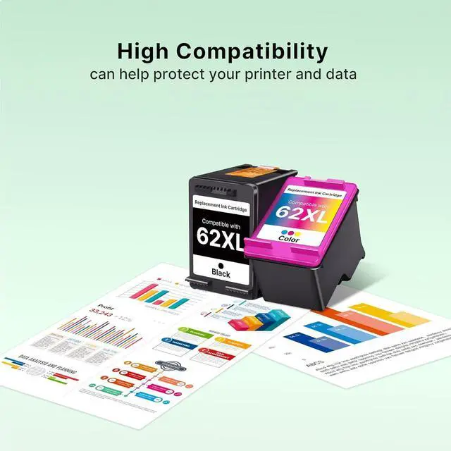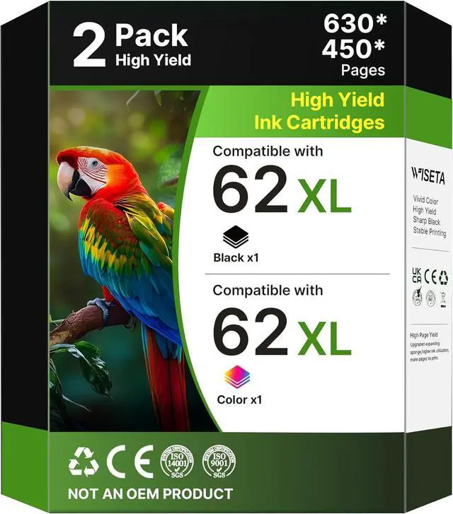 Package contents: 1 x 62xl ink cartridges black , 1 x 62xl ink cartridges black tri-color (Total 2 Pack).