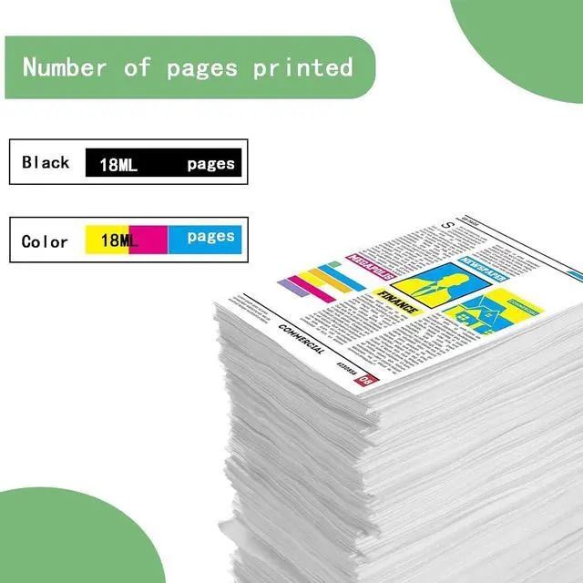 Page Yield: Ink Volume 18ml Per Black 18ml Per Color,400 Pages Per Black Cartridge, 300 Pages Per Color (Based On 5% Coverage)