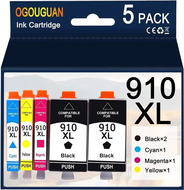 Package Contents : Compatible for hp 910xl ink cartridges combo pack. 2 pack hp 910xl black,1 pack hp 910xl cyan,1 pack hp 910xl magenta,1 pack hp 910xl yellow (Total 5 pack)