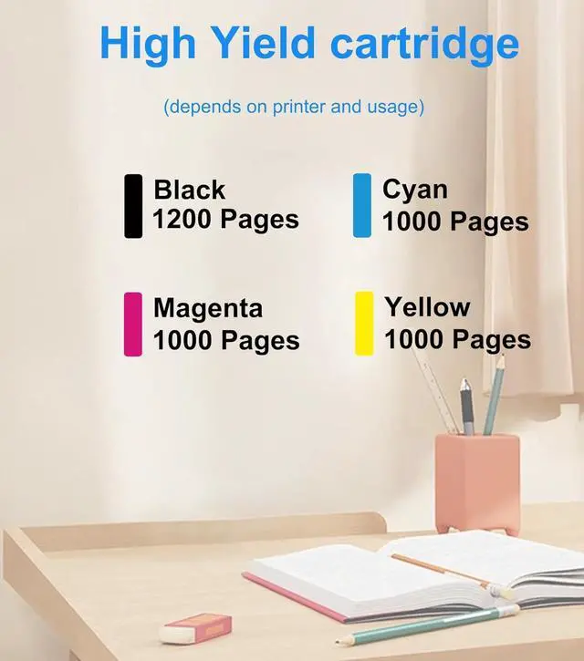 Page Yield: 1200 pages per hp 910xl black ink cartridges, 1000 pages per hp 910xl color ink cartridges (at 5 percentage coverage)
