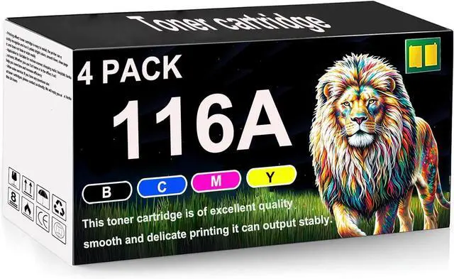 PACKAGE CONTENTS: 116A black toner cartridges x1. 116A blue toner cartridges x1. 116A yellow toner cartridges x1. 116A red toner cartridges x1.
