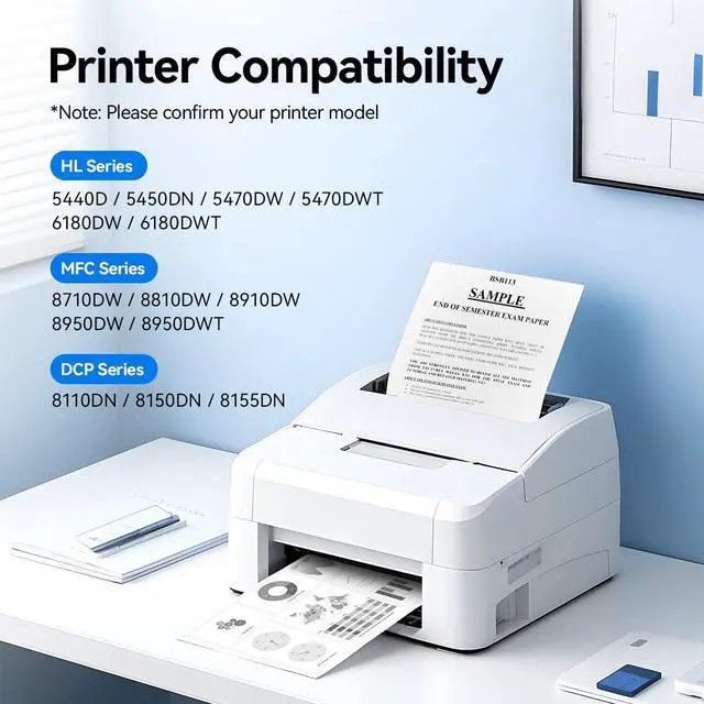 Perfect Compatibility: Compatible for Brother DCP-8110DN, DCP-8150DN, DCP-8155DN, HL-5440D, HL-5450DN, HL-5470DW, HL-5470DWT, HL-6180DW, HL-6180DWT, MFC-8510DN, MFC-8710DW, MFC-8810DW, MFC-8910DW, MFC-8950DW, MFC-8950DWT Printer