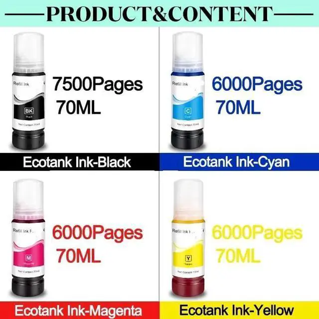 T544 544 Dye Ink 70ml Bottle Refill Kit - Compatible with Epson EcoTank L3150 L3110 L3100 L3210 L3250 L1110 5190 - Inkjet Printer