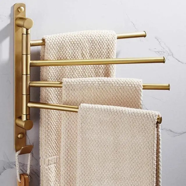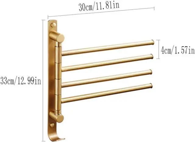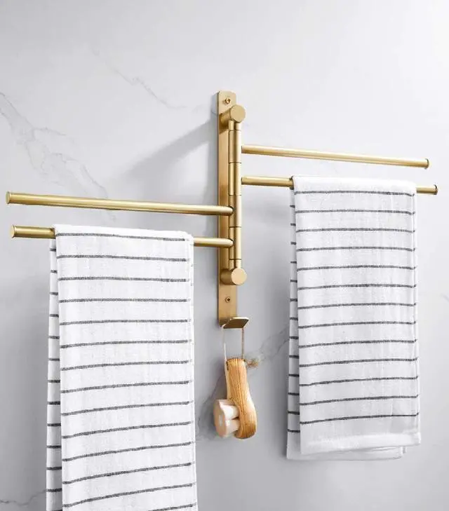 Foldable: 180° rotation Stainless steel swivel towel bars with 4 folding arms, can be folded against the wall when not in use. Save your room space.
