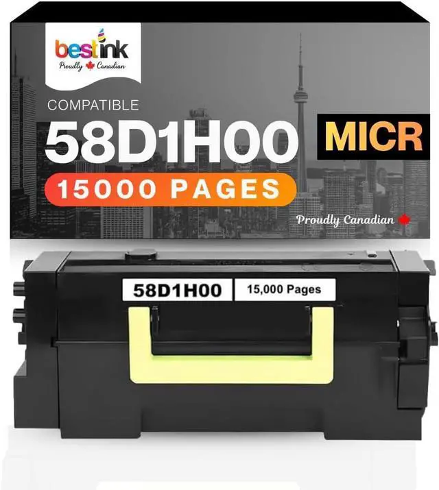Save more while ensuring top-quality check printing with the 58D1H00 remanufactured MICR toner cartridge. Built in the CANADA by skilled technicians, and reliable performance.