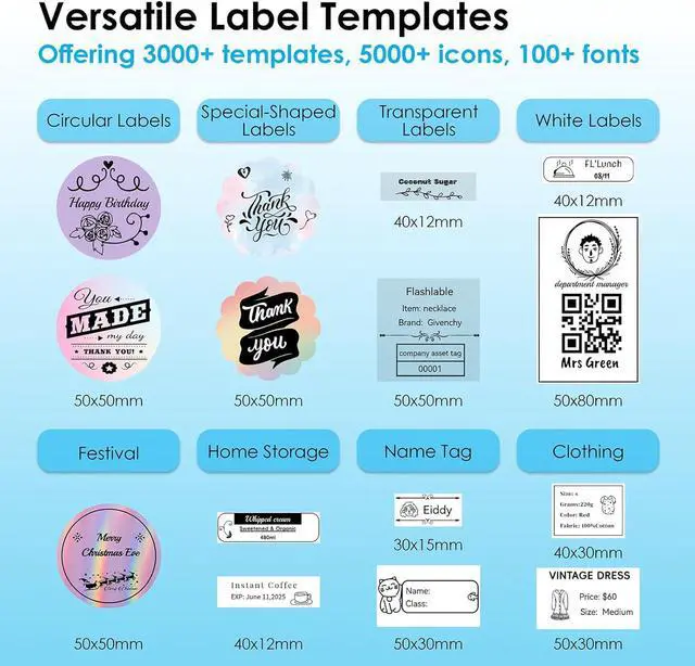 Easy-to-use App & DIY Labels: KNAON Thermal Shipping Label Printer offers a vast selection of pre-designed templates, including 3,000+ templates, 5,000+ icons, and 100+ fonts available in the app. Designed for both professional and personal use, it supports various thermal paper sizes, ensuring effortless customization for all your labeling needs. Ideal for printing DIY barcode labels, thank-you labels, name tags, price tags, and various small thermal labels.