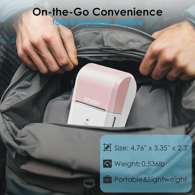 Compact & Portable: The KNAON Portable Thermal Label Printer is designed for on-the-go use, featuring a compact size of 4.76 x 3.35 x 2.31 incheseasy to carry, easy to store. Powered by a reliable 1200mAh battery, it supports fast and convenient charging via a Type-C cable. Each package also includes a 50mm x 30mm roll of thermal label paper to get you started right away.