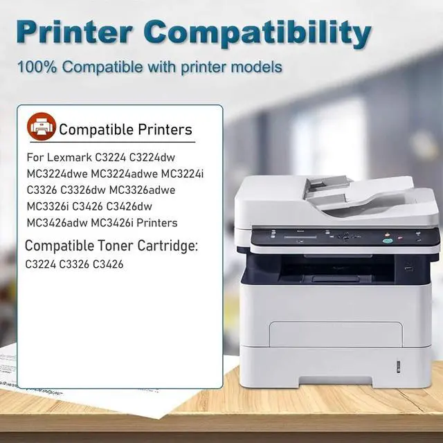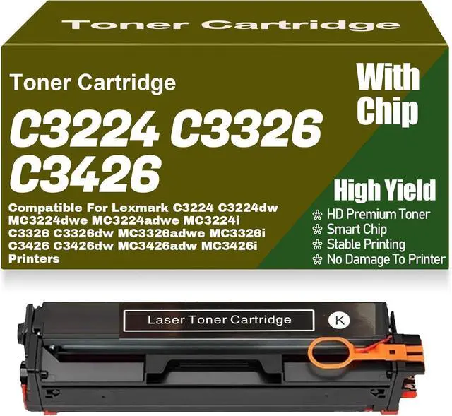 Compatible PrintersC3224 C3326 C3426 toner cartridges with Chip for Lexmark C3224 MC3224 C3224dw MC3224dwe MC3224adwe MC3224i C3326 MC3326 C3326dw MC3326adwe MC3326i C3426 MC3426 C3426dw MC3426adw MC3426i.