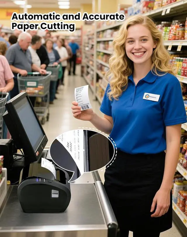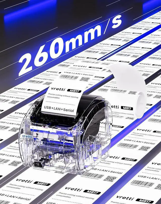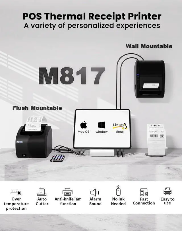 Blazing-Fast 300mm/s Printing Speed VRETTI M817 thermal receipt printer delivers ultra-fast printing at 300mm/s20% faster than standard 250mm/s modelsperfect for high-volume environments like restaurants, retail stores, and hospitals. Enjoy crisp, smudge-free 203 DPI receipts without ink, toner, or ribbons, reducing operational costs.