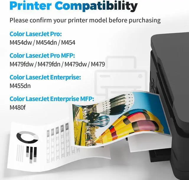 Compatible Printers: 414A 414X Compatible with HP 414 Color LaserJet Pro MFP M479fdw M479fdn M479dw M479, Compatible with Color Pro M454dw M454dn M454, Compatible with Color Enterprise M455dn, Compatible with Color Enterprise MFP M480f