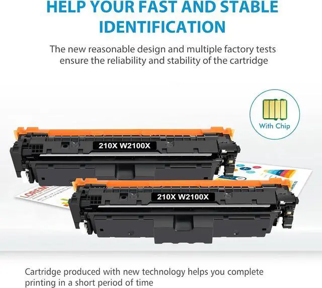Superior quality: High-efficiency 210X with chips toner to get the clear text and vivid color printing. These W2100X toner cartridges are alread installed with orginal chips, No need to transfer orginal toner chip to them