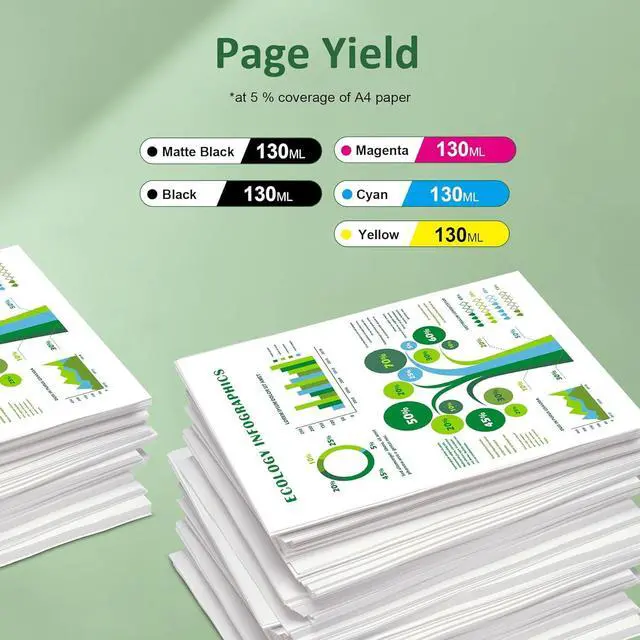 High Page Yiled: Up to 1,200 pages per compatible PFI-107 Ink Cartridges at 5% coverage on A4 paper.